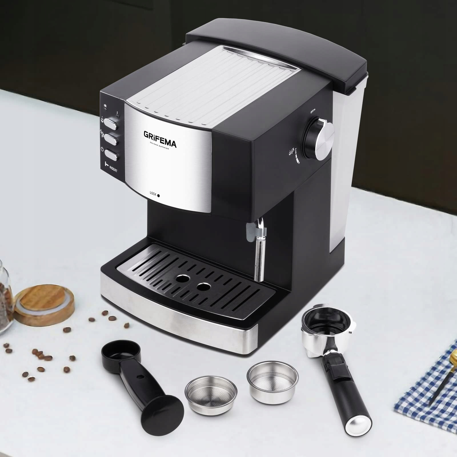 Ekspres GRIFEMA zapewnia wysokie ciśnienie (zwykle 15 barów), co pozwala uzyskać bogaty smak espresso i perfekcyjną cremę na powierzchni kawy.