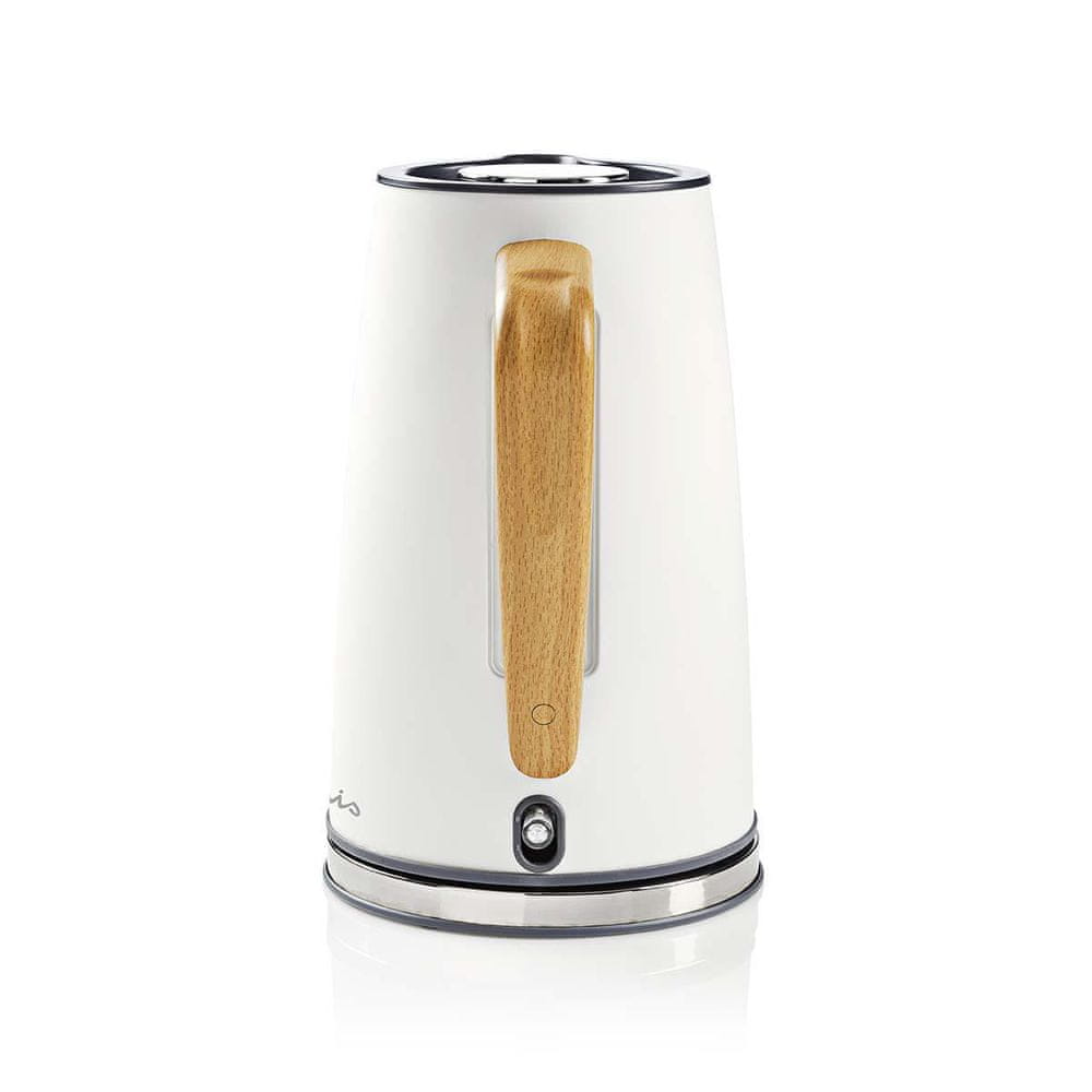 Ten elegancki czajnik elektryczny marki Nedis to połączenie nowoczesnego designu z funkcjonalnością. Matowa biała obudowa, minimalistyczna forma i stylowy uchwyt imitujący drewno sprawiają, że czajnik prezentuje się wyjątkowo estetycznie w każdej kuchni – zarówno klasycznej, jak i nowoczesnej.