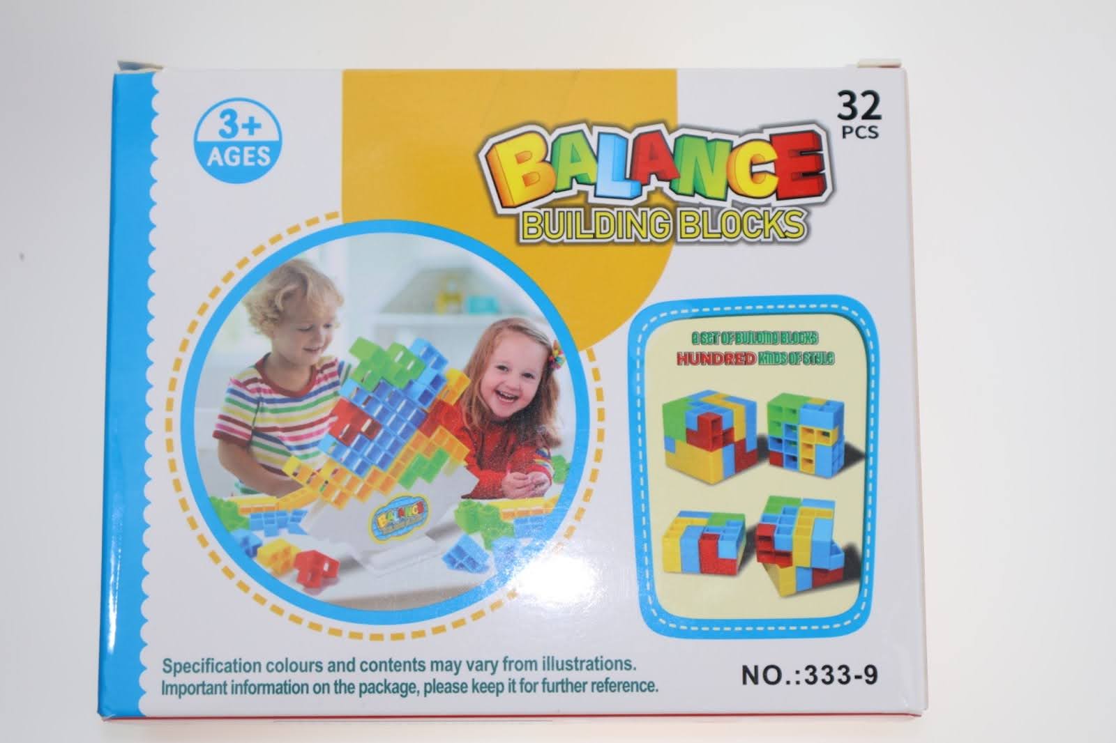 - 32 kolorowe, lekkie klocki