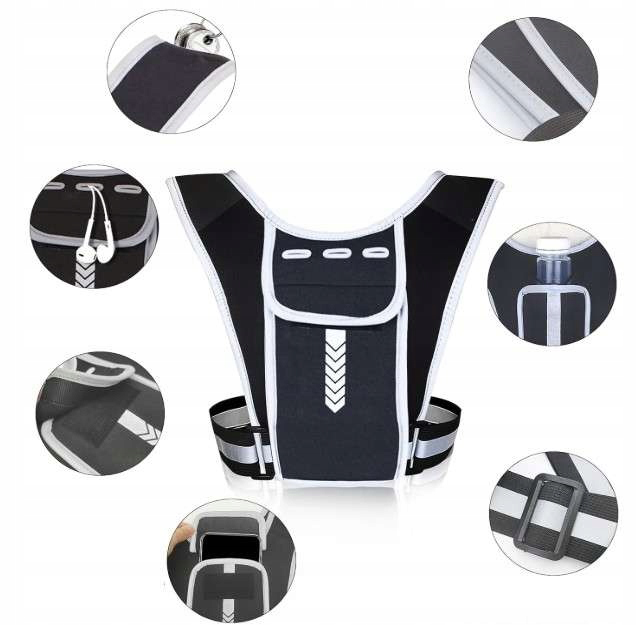 - Wielokieszeniowa konstrukcja: odblaskowa kamizelka do biegania ma kieszenie o różnym wzorze. Przedni uchwyt na telefon z łatwością pomieści większość smartfonów o przekątnej do 8 cali i trzy gniazda słuchawkowe, dzięki czemu możesz słuchać swojej ulubionej playlisty. Dwie kieszenie na ramię na klucze lub monety, a także kieszeń na butelkę z linką mocującą z tyłu, która pomaga lepiej zamocować butelkę z wodą i pewnie ją nieść.
