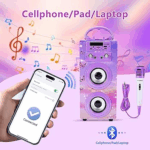 DYNASONIC E-025 to przenośny głośnik Bluetooth, który łączy funkcje odtwarzacza muzyki z możliwością karaoke.Dzięki dwóm mikrofonom w zestawie, jest idealnym wyborem na imprezy, spotkania rodzinne czy prezent dla dzieci.Kluczowe cechy: