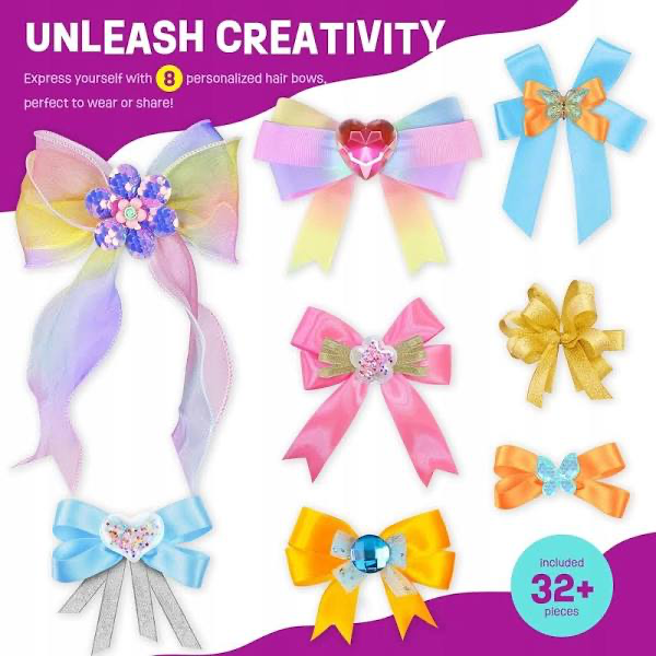 Idealny prezent dla dziewczynek: zestaw rzemieślniczy jest dostarczany z unikalnymi zawieszkami na prezenty, dzięki czemu jest idealnym prezentem na urodziny i święta, takie jak Wielkanoc, Dzień Dziecka, Halloween, Boże Narodzenie itd. Jest to aktywność dla dziewcząt w wieku 5-12 lat, podczas której mogą tworzyć kokardki do włosów i dobrze się bawić, podarowując je rodzinie i przyjaciołom.
