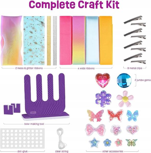 Łatwe i przyjemne w majsterkowaniu: idealne dla małej dziewczynki, która lubi się bawić i jest kreatywna. Zestaw zawiera wszystko, czego potrzebujesz, aby stworzyć kilka akcesoriów do włosów i jest wystarczająco łatwy w użyciu, bez konieczności stosowania zbyt wielu instrukcji dla rodziców. Akcesoria do włosów są naprawdę urocze i sprawiają, że małe dziecko poczuje dumę i sukces, wiedząc, że je wykonało!