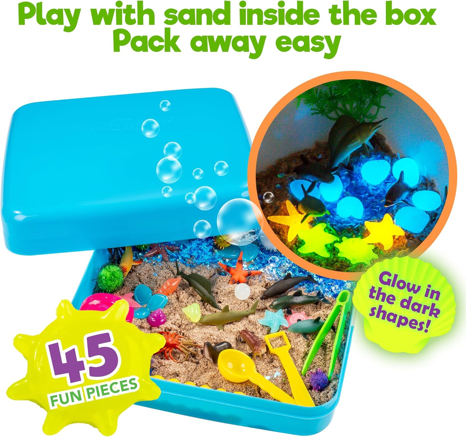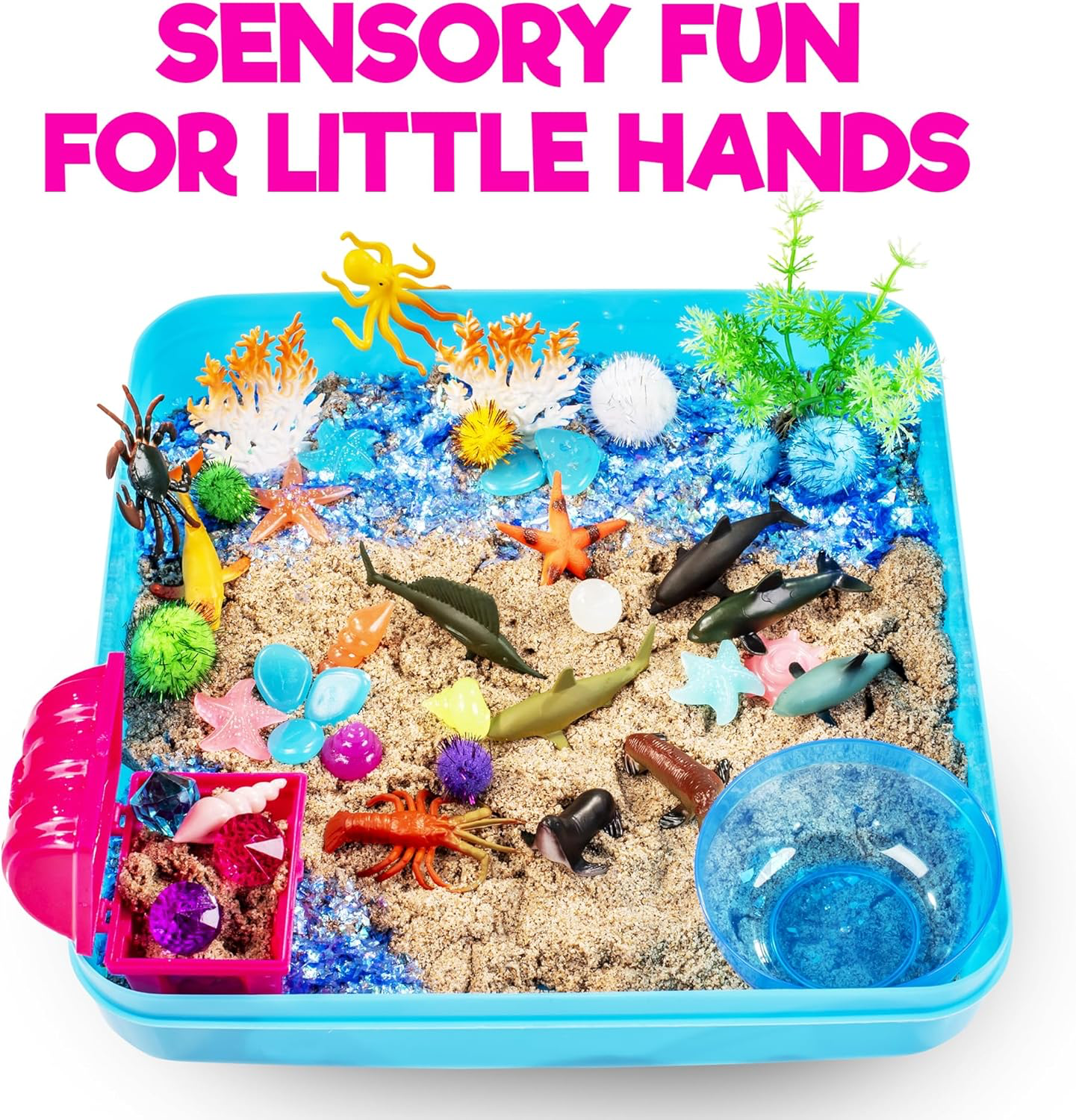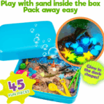 Treasure Hunt Beach Discovery to zestaw sensoryczny, który łączy w sobie przyjemność zabawy piaskiem i ekscytację poszukiwacza skarbów. Dzieci odkrywają ukryte elementy, kopiąc i przesiewając piasek – zyskując nie tylko zabawę, ale i rozwój zmysłów.