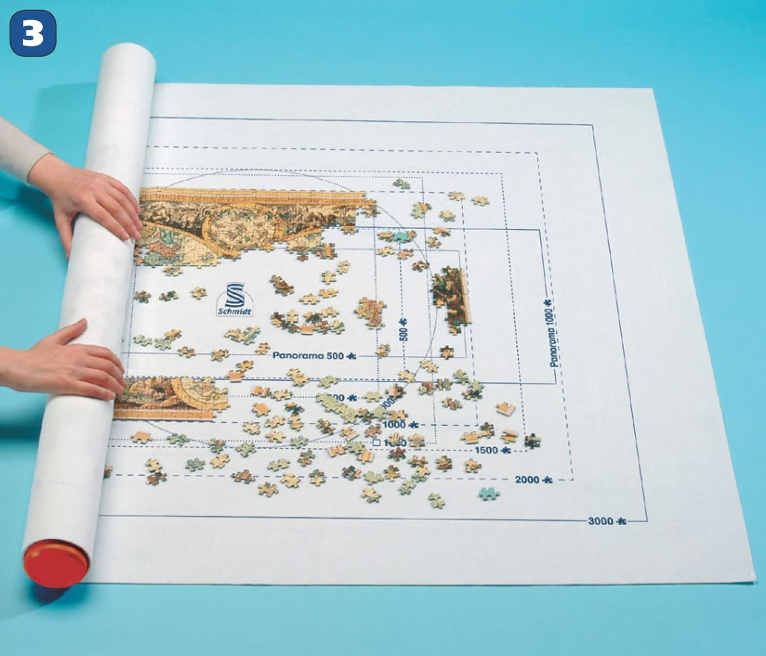 Dzięki temu nie musisz kończyć układanki od razu — wystarczy zwinąć matę i odłożyć na bok, by powrócić do pracy w dogodnym momencie .
