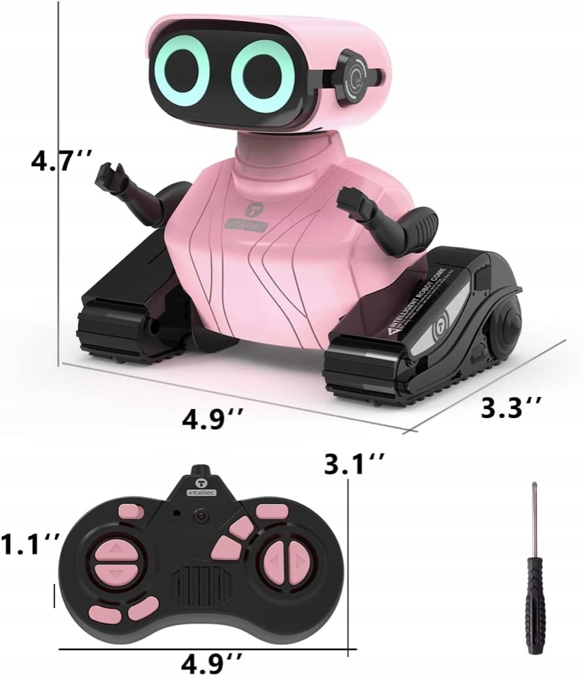 Składa się z dwóch sekcji: górna – Uroczy robot z dużymi LED-owymi oczami i elastycznymi ramionami, a dolna – podstawa z gąsienicami/tankowymi.