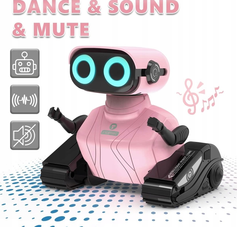 • Nagrywanie i powtarzanie: przytrzymanie przycisku nagrywa krótki komunikat, który potem robot potrafi odtworzyć – dostępne 2–3 ślady, po 8–90 sekund.