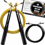 - Praktyczna i uniwersalna: dzięki stalowej linie o grubości 2,5 mm pokrytej powłoką PVC będziesz mógł skakać szybciej niż kiedykolwiek. Lina jest także wyjątkowo trwała i odporna na plątanie. Długość wynosi 3 m, więc nadaje się dla osób o