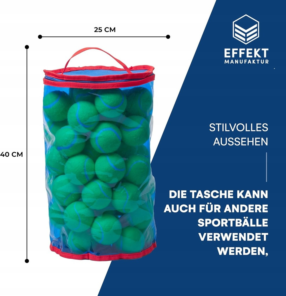 🚶‍♂️ Wygodna i lekka – kompaktowy rozmiar 40 x 25 x 25 cm sprawia, że torba nadaje się dla dorosłych i dzieci. Idealna do przechowywania piłek tenisowych,  Zamykana na zamek błyskawicznyzny – bezpieczne i szybkie przechowywanie zawartości.
