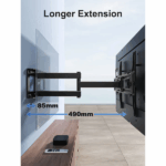 - Minimalny profil 85 mm, rozłożony do 490 mm – elastyczne ustawienia w zależności od aranżacji wnętrza.Kompatybilność VESA 100×100–400×400 mm