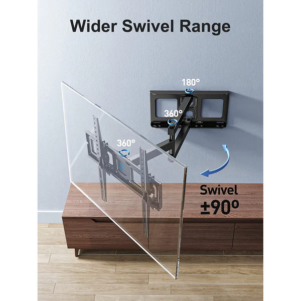 Perlesmith PSMFK10 E to w pełni obrotowy i wysięgnikowy uchwyt ścienny, który pozwala maksymalnie wykorzystać możliwości Twojego telewizora – optymalne pozycjonowanie i doskonały komfort oglądania.