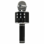 Stylowy mikrofon karaoke z wbudowanym głośnikiem i łącznością Bluetooth. Idealny na imprezy, wyjazdy i domowe koncerty! Obsługuje nagrywanie, radio FM, microSD i ma efekty dźwiękowe (echo, bas, sopran). Działa bezprzewodowo dzięki wbudowanemu akumulatorowi. Kompatybilny z Android, iOS i PC.