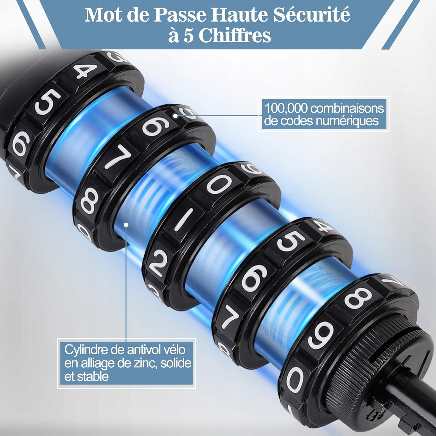 Bezpieczeństwo kodów i komfort: zapięcie rowerowe wykorzystuje 5-cyfrowy kod z maksymalnie 100 000 kombinacjami, których praktycznie nie da się złamać.