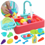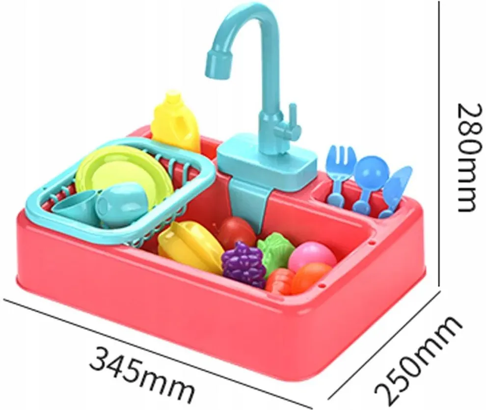 Zestaw z realistycznym kranem, z którego płynie woda, to hit każdej zabawy! Woda cyrkuluje w obiegu zamkniętym dzięki zintegrowanemu mechanizmowi, co zapewnia długotrwałą i ekonomiczną zabawę. Dzieci mogą myć „brudne” naczynia i warzywa, rozwijając przy tym